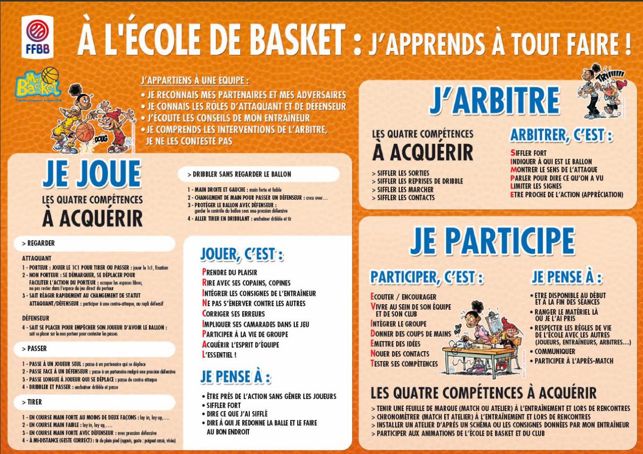 – Encourager les minibasketteuses et les minibasketteurs à acquérir progressivement des compétences bien identifiées de joueur, d’arbitre et d’organisateur